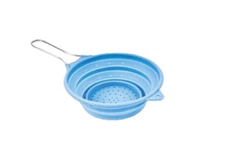 Skládací cedník. Ideální pro přípravu teplých i studených pokrmů. Úspora místa. Materiál silikon, rukojeť nerez. Rozměry: 37,7 x 20,5 x 2-10 cm.