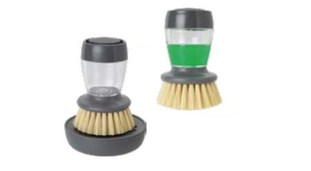 Tělo kartáče vyrobeno z robustního materiálu s integrovaným zásobníkem na mycí prostředek. Ideální pro efektivní a šetrné mytí nádobí. Tlačítko umožňuje cílené dávkování mycího prostředku. Včetně odkládací misky.