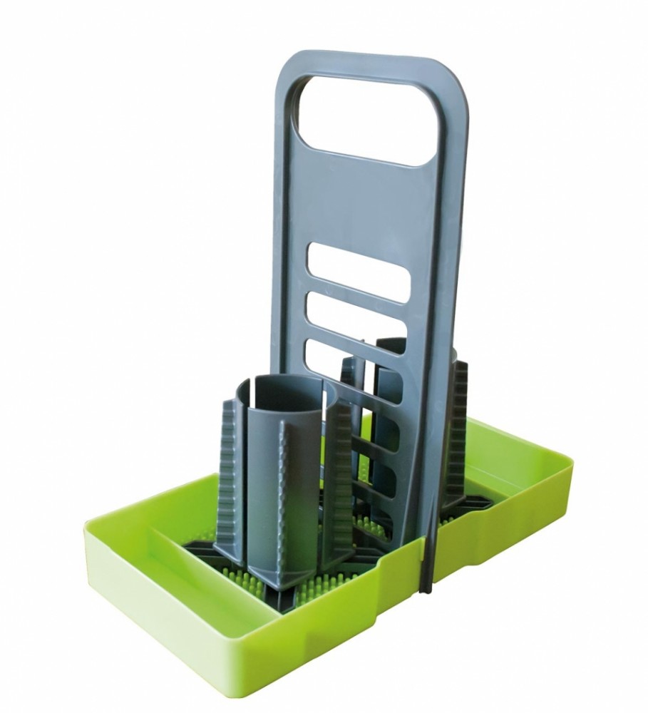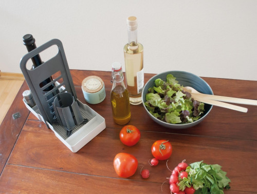 Ideální pro mobilní použití. Bezpečná a bezkapající přeprava octu a oleje. Odkapávací miska se zvýšeným okrajem zabraňuje vytékání tekutin (např. ocet/olej, likéry). Praktické madlo na přenášení. Robustní a rozměrově stabilní materiál zajišťuje bezpečné držení. Vhodné do myčky. Variabilní možnosti zásuvných modulů v rámci desky. Princip držáku STEKK.