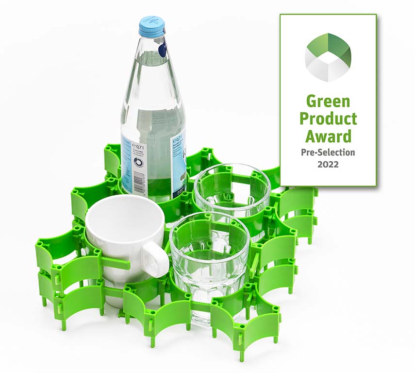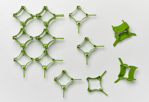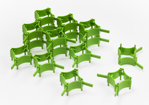 Variabilní konektorový systém. Vyrobeno z 95% bioplastu, 100% recyklovatelné.