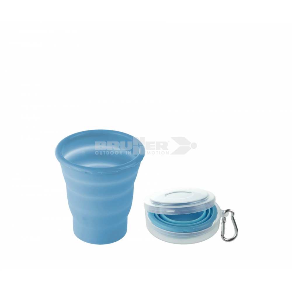 Skládací šálek ze silikonu. Objem 200 ml. Rozměry: ø 8 x 1,5/8 cm.