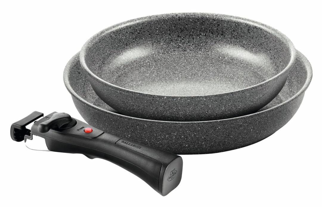 Sada obsahuje pánev o průměru 24 cm a 28 cm s odnímatelnou rukojetí.