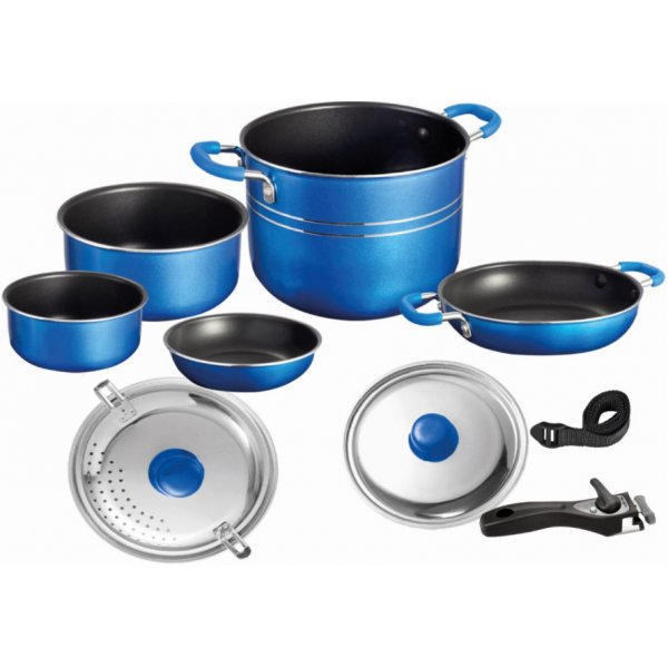 8dílná hliníková varná sada ve 2barevném provedení. S nepřilnavým povrchem. Nízká hmotnost a rychlé rozložení tepla. Úspora energie.