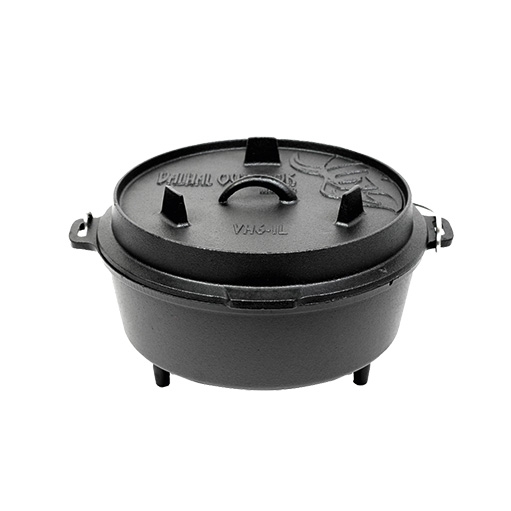Holandské trouby jsou vyrobeny z litiny. Jedná se o ideální materiál, protože je vhodný pro jakýkoli zdroj tepla, lze jej zahřát na vysokou teplotu a velmi dobře udržuje teplo. Díky plochému dnu můžete hrnec snadno používat na grilu, varné desce nebo v troubě. Nožičky vám umožní umístit jej přímo nad zdroj tepla, aniž by se udusilo teplo. To je ideální, pokud chcete používat holandskou troubu s horním a spodním ohřevem. Holandskou troubu pak umístíte přímo nad např. B. uhlíky a trochu dejte na poklici, kterou lze použít i dnem vzhůru jako pánev. Všechny litinové výrobky Valhal jsou předem ošetřeny přírodním olejem.
