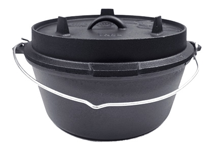 Holandské trouby jsou vyrobeny z litiny. Jedná se o ideální materiál, protože je vhodný pro jakýkoli zdroj tepla, lze jej zahřát na vysokou teplotu a velmi dobře udržuje teplo. Díky plochému dnu můžete hrnec snadno používat na grilu, varné desce nebo v troubě. Nožičky vám umožní umístit jej přímo nad zdroj tepla, aniž by se udusilo teplo. To je ideální, pokud chcete používat holandskou troubu s horním a spodním ohřevem. Holandskou troubu pak umístíte přímo nad např. B. uhlíky a trochu dejte na poklici, kterou lze použít i dnem vzhůru jako pánev. Všechny litinové výrobky Valhal jsou předem ošetřeny přírodním olejem.