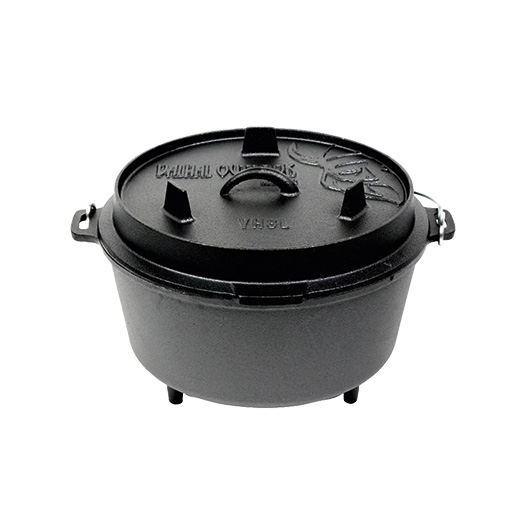 Holandské trouby jsou vyrobeny z litiny. Jedná se o ideální materiál, protože je vhodný pro jakýkoli zdroj tepla, lze jej zahřát na vysokou teplotu a velmi dobře udržuje teplo. Díky plochému dnu můžete hrnec snadno používat na grilu, varné desce nebo v troubě. Nožičky vám umožní umístit jej přímo nad zdroj tepla, aniž by se udusilo teplo. To je ideální, pokud chcete používat holandskou troubu s horním a spodním ohřevem. Holandskou troubu pak umístíte přímo nad např. B. uhlíky a trochu dejte na poklici, kterou lze použít i dnem vzhůru jako pánev. Všechny litinové výrobky Valhal jsou předem ošetřeny přírodním olejem.