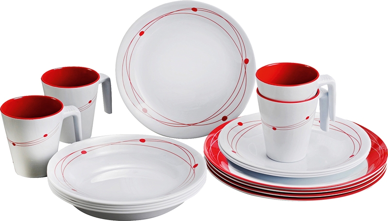16dílná sada skládající se ze 4 jídelních talířů ø 25 cm, 4 polévkových talířů ø 21 cm, 4 dezertních talířů ø 20 cm, 4 hrnků 0,3l.
