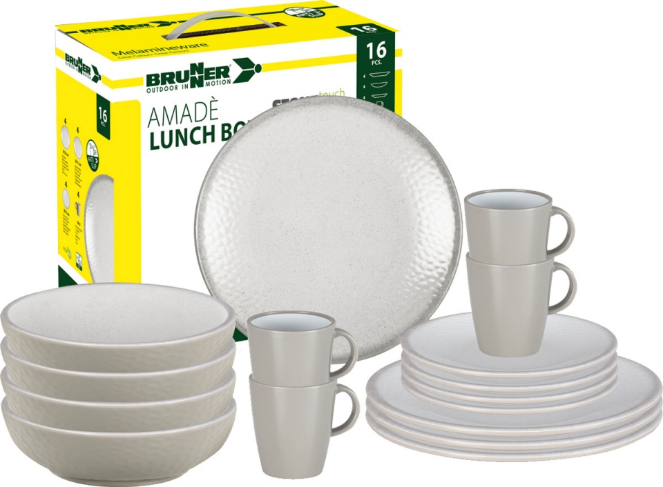 16dílná sada sestávající ze 4 jídelních talířů ø 25 cm, 4 polévkových talířů ø 20 cm, 4 dezertních talířků ø 20 cm a 4 hrnků 30 cl.