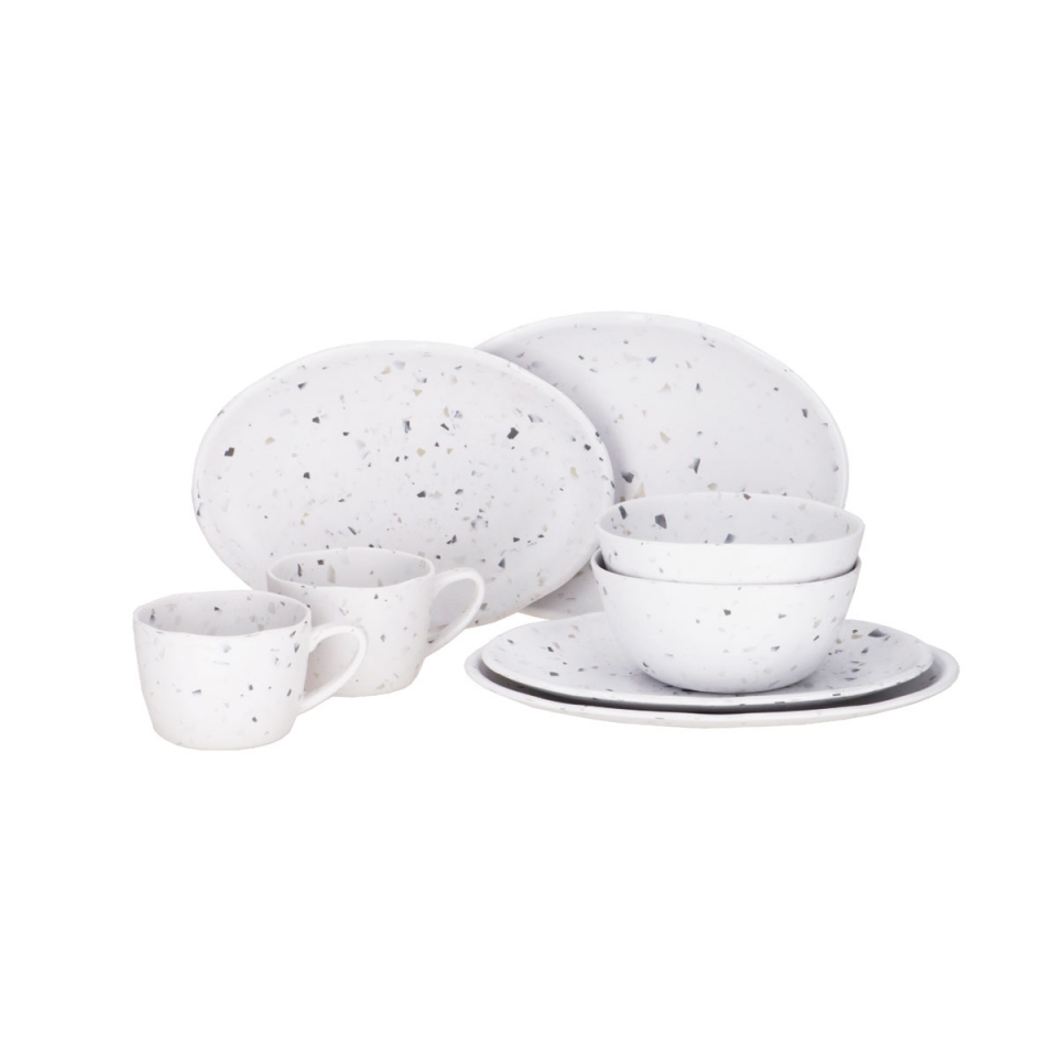 16dílná sada nádobí SORIA je vyrobena z melaminu, je odolná proti poškrábání a extrémně robustní. Díky tomu je vhodná pro venkovní použití. Nádobí je také vhodné do myčky. Misky a talíře sady nádobí Soria lze perfektně stohovat, takže zaberou málo místa. Sada se skládá ze 4 šálků 275 ml, 4 misek ø 15 cm, 4 dezertních talířů ø 23 cm a 4 jídelních talířů ø 28 cm.