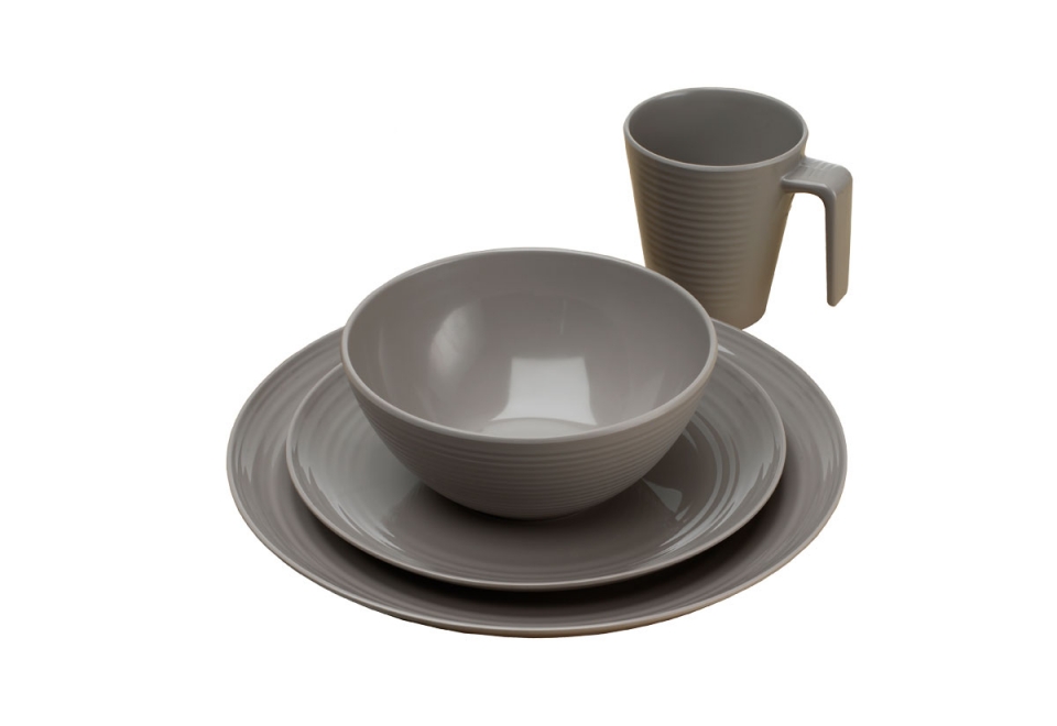 16dílná sada nádobí sestávající ze 4 jídelních talířů, 4 dezertních talířů, 4 polévkových misek a 4 hrnků.