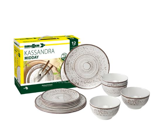 12dílná sada skládající se ze 4 jídelních talířů ø 25 cm, 4 dezertních talířů ø 20 cm a 4 misky ø 15 cm.