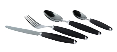 16dílná sada příborů z ušlechtilé oceli s kvalitní plastovou rukojetí. Barva černá.