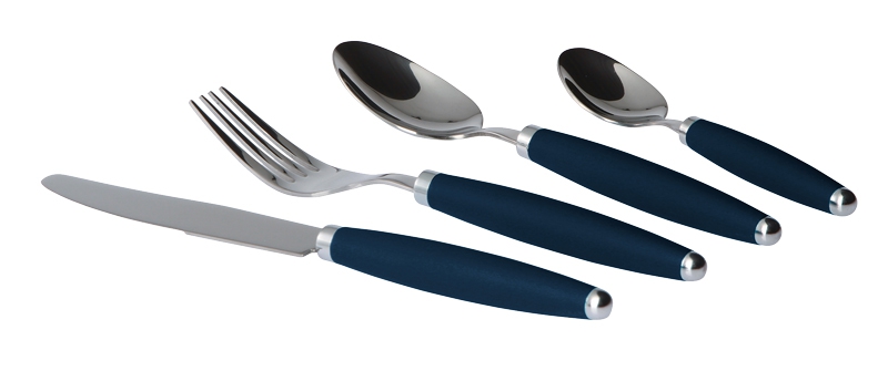 16dílná sada příborů z ušlechtilé oceli s kvalitní plastovou rukojetí.