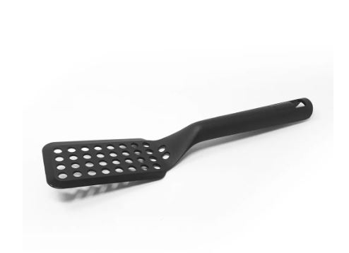 Díky svému plochému tvaru je obracečka ideální i pro malé velikosti pánví. Díky otvorům může odkapávat přebytečný tuk.