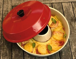 Chytrá malá trouba, se kterou můžete péct a připravovat jídlo na cestách: přímo na plynovém plameni, sporáku nebo na varné desce. Bez námahy, levně a prostorově nenáročně připravíte vše, co lze upéct v běžné troubě. Ideální pro loď, obytný vůz, karavan, stan, zahradu nebo jiná místa, kde chybí trouba. OMNIA se skládá ze tří částí, které dohromady tvoří troubu s horním i spodním ohřevem. Důmyslná konstrukce, která se velmi snadno používá a tisíckrát se osvědčila. Kempingová trouba OMNIA je primárně určena pro otevřený plamen, ale výborně funguje i na běžné elektrické varné desce. Pak ale pečení trvá o 25-50 % déle.