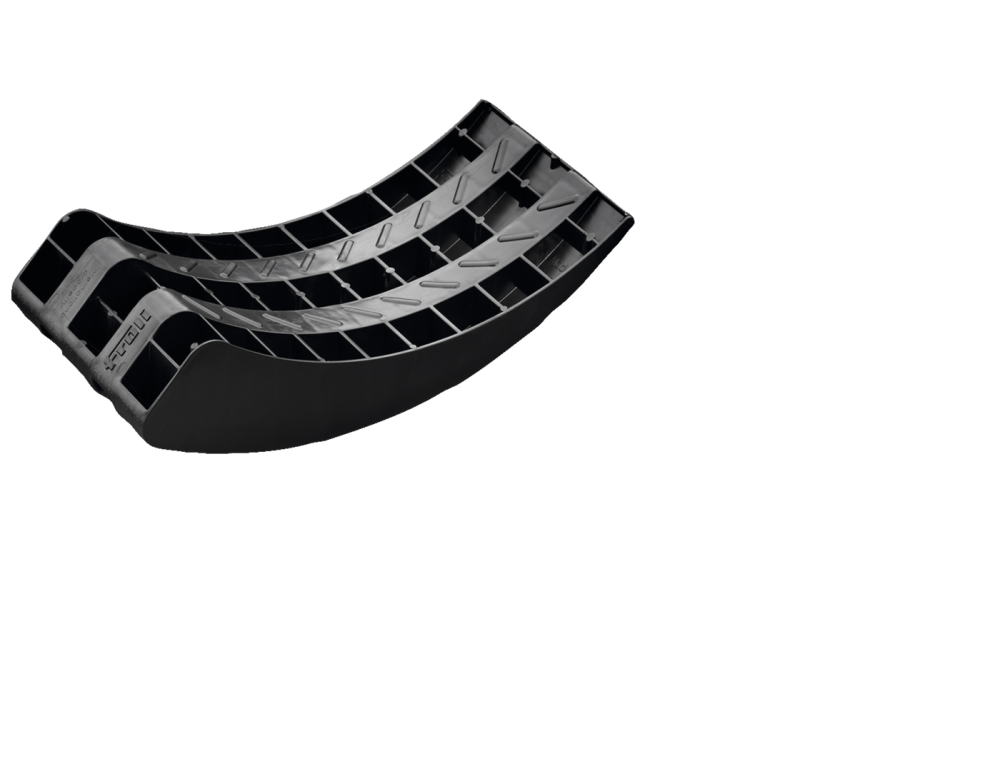Klín pod kola Froli je dokonale tvarován tak, aby odpovídal zakřivení pneumatiky vozidla. Snadné, plynulé nastavení (až 8 cm) a optimální ochrana pneumatiky. Dokonalé rozložení zatížení (zatížení vždy působí shora) zabraňuje prokluzování klínu.