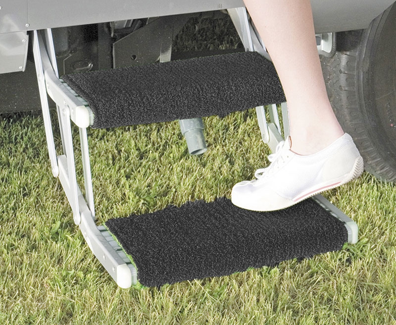 Pohodlná rohožka pro obytný automobil nebo karavan na elektrické nebo ruční schůdky. Snadno se čistí. Lze řezat na požadovanou velikost. Materiál: Plast.