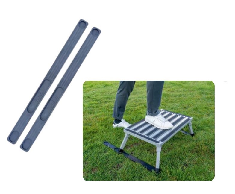 Podpěry dodávají schůdku dodatečnou stabilitu a zabraňují zapadnutí nohou schůdku do měkčí půdy. Umístěte podpěry na zem a vložte nohy do výklenků. Podpěry Tasmánie jsou vhodné pro mnoho různých značek schodů.