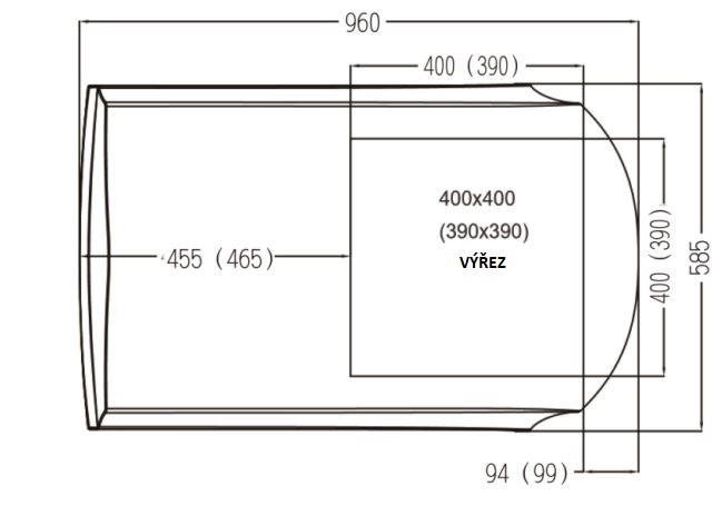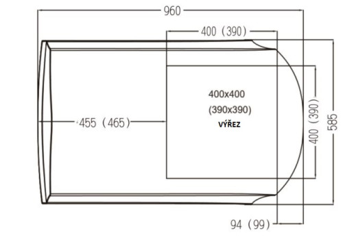 Střešní výřez: 400 x 400 mm