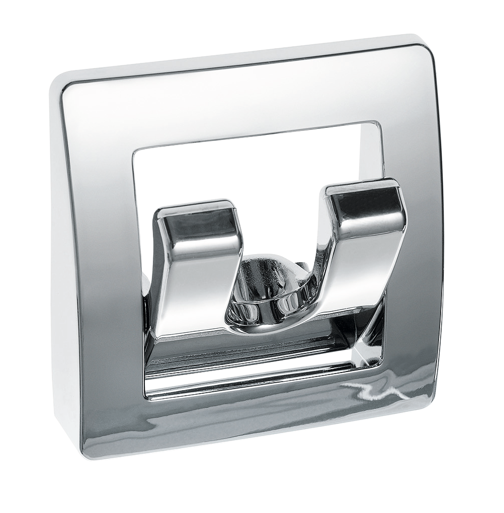 Vyrobeno z tlakově litého zinku. Rozměry (Š x V x H) 57 x 58 x 12/30 mm. Se dvěma skládacími háky.