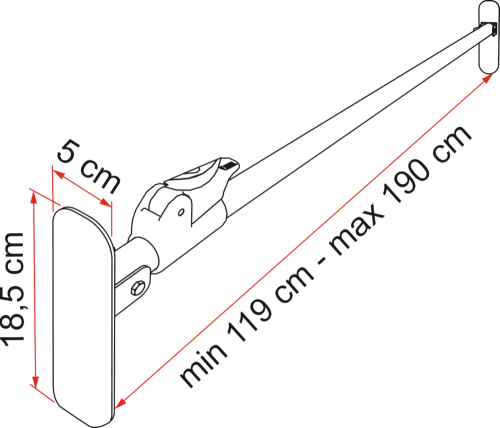 Zamykací mechanismus umožňuje plynulé nastavení délky tyče.