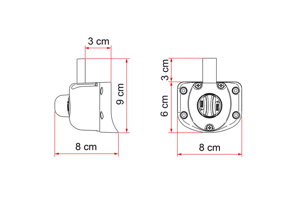 Robustní hliníkový bezpečnostní blok pro montáž do dveří nebo garáže obytných automobilů a karavanů k zamčení vchodových dveří. Nahrazuje standardní, slabé zámky a používá stejné montážní otvory.