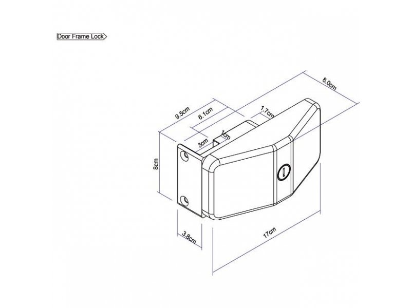 Tento zámek se přišroubovává k vnitřní straně zárubně, což umožňuje instalaci, i když například nábytek zakrývá prostor pro montážní desku. Je vyžadována minimální mezera dveří 5 mm. Vyrobeno z robustního hliníku s práškovým nástřikem.