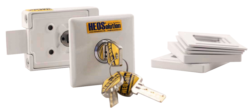 Při instalaci se dveře sevřou mezi vnitřní zámek a vnější kryt. Není nutné žádné další upevnění. Závora se zasouvá za rám. Vnější kryt je eloxovaný a práškově lakovaný.