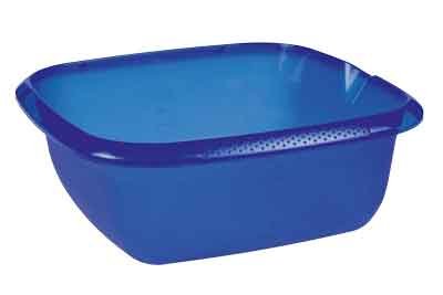 Tento robustní lavor na mytí nádobí je vybaven rukojetí, hubicí a měřící stupnicí. Barva modrá-transparentní. Cca 38 x 38 x 15 cm. Objem cca 14 l.