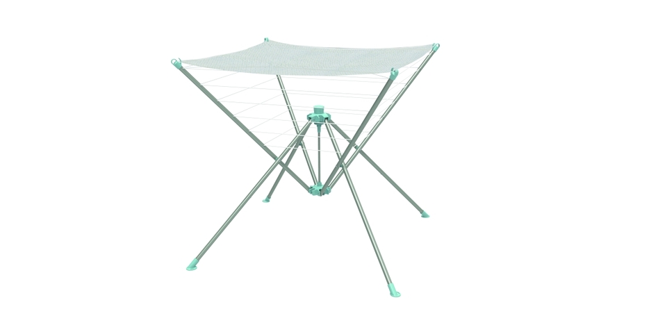 Skládací ocelový trubkový rám. 15 m prádelní šňůra. Včetně 4 zemních kolíků a praktické přenosné tašky.