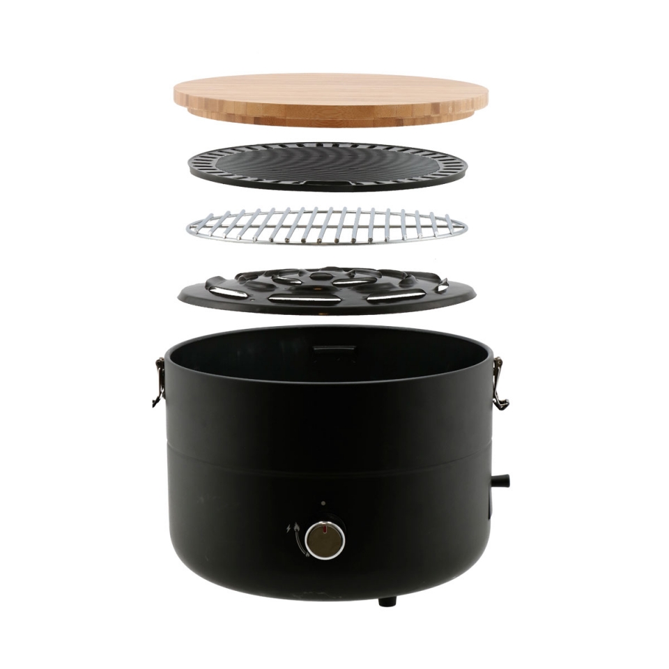 Díky kompaktní velikosti a praktické rukojeti se BBQ Mini Chef velmi snadno přepravuje. S modulárním systémem s různými varnými plochami a multifunkčním prkénkem. S piezo zapalováním a integrovanou miskou na odkapávání tuku. Výkon 2,5kW. Provozní tlak 30 mbar. Varná plocha průměr 31 cm. Rozměry ø 33,8 x 24 cm. Hmotnost 5,2 kg.