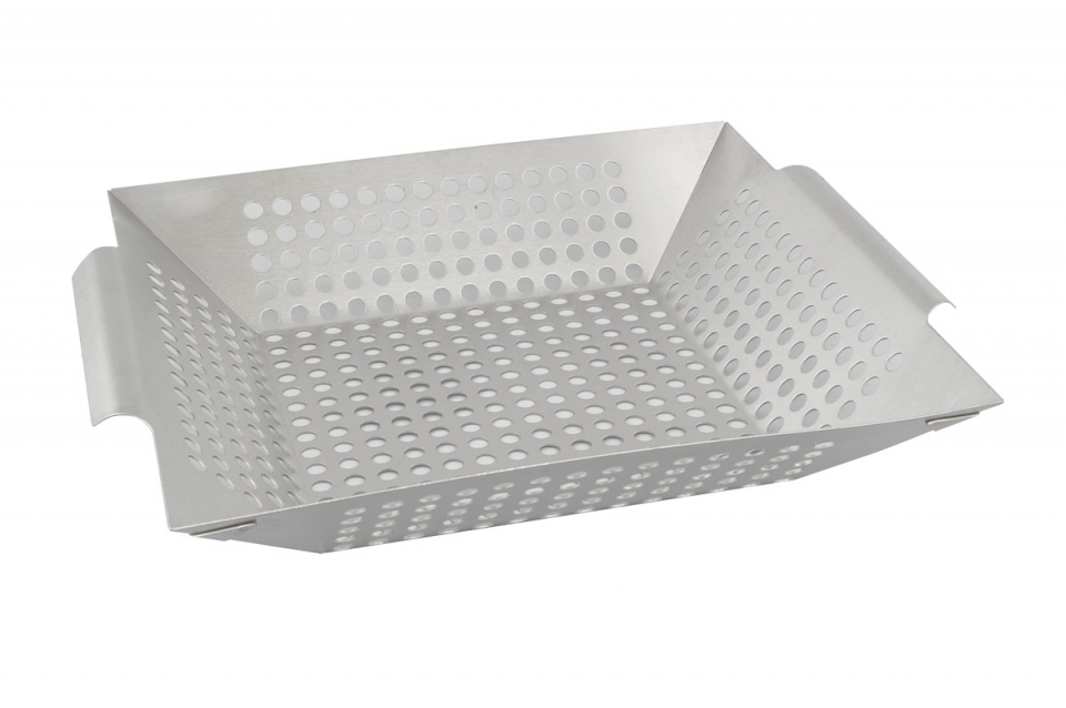 Grilovací koš z nerezové oceli pro přípravu zeleniny. Zeleninu vložte do košíku s kořením a trochou oleje a pečte přímo na grilu. Rozměry 30,5/19 x 30,5/19 x 6,5 cm.