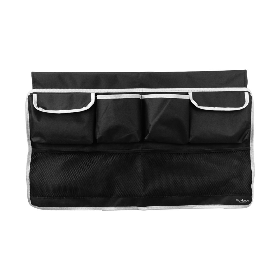 Materiál 600D polyester. Černá barva. 4 malé kapsy a 2 velké síťované kapsy. Rozměry 70 x 35 cm.