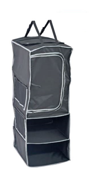 Praktický organizér na zavěšení - ideální doplněk ke stávajícímu sortimentu. S boční kapsou na jako suchý zip a přezkou k zavěšení. Materiál 600D polyester. Barva: černá. Rozměry 35 x 35 x V95 cm.