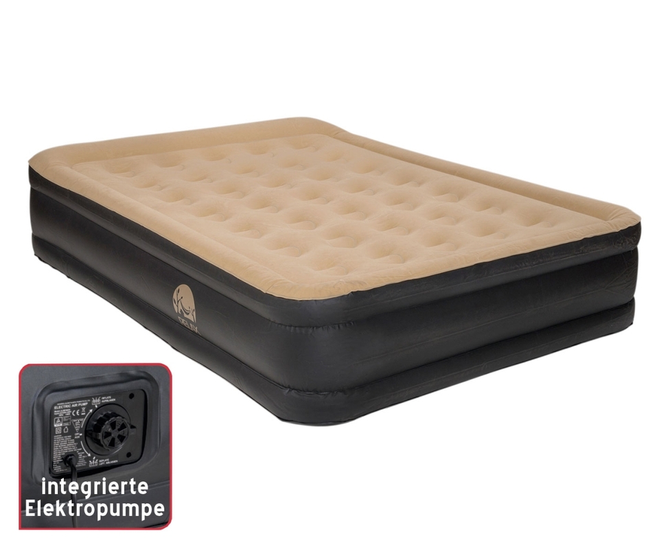 S integrovaným elektrickým čerpadlem 230 V a vločkovaným povrchem. Materiál 100% polyvinylchlorid. Barva černá/béžová. Obsahuje tašku na přenášení.