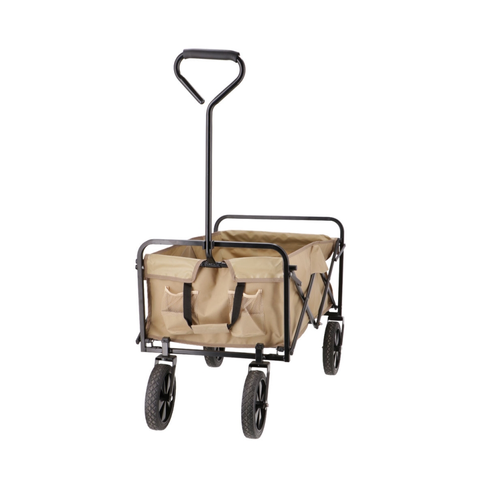 Vybaveno otočnými plastovými koly nebo pneumatikami, které nabízejí maximální přilnavost i při výletech na nezpevněném povrchu. Všechny vozíky jsou vyrobeny z tkaniny odolné proti povětrnostním vlivům a mají vodoodpudivý povlak. Díky speciálnímu skládacímu mechanismu lze vozíky po použití kompaktně složit a uložit do úložného boxu, kufru nebo garáže. Materiál: textilní tkanina.