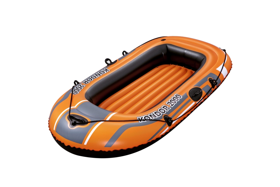 Extrémně robustní nafukovací člun Kondor 2000 od Bestway je vyroben z odolného PVC a poskytuje opravdové pohodlí na vodě. Celoobvodové záchytné lano uchycené plastovými oky usnadňuje rychlý návrat po pádu do vody. Na přídi je také průchod pro lano, takže člun lze snadno táhnout za sebou. Na bocích jsou připevněny praktické svorky pro zajištění vesel (nejsou součástí dodávky).