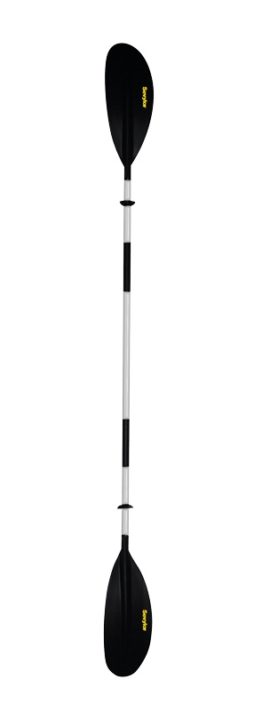 2dílné hliníkové pádlo. Nastavení více stupňů. Asymetrické lopatky ze skelného vlákna a vyztužené vlákny ve tvaru lžíce s vodícím žebrem. Hřídel ze speciálního hliníku (z letecké techniky). Příjemný úchopový povrch. 2 odkapávací kroužky.