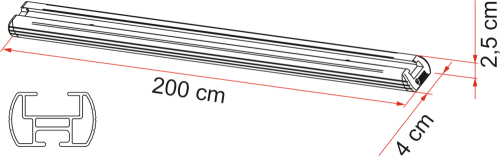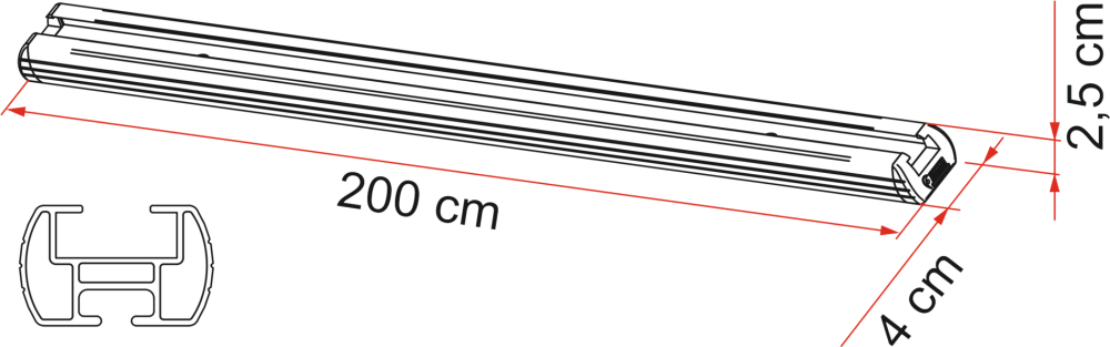 Dvě eloxované hliníkové lišty, které lze namontovat na stěnu nebo podlahu. Součástí balení je 10 nastavitelných závěsných ok Kit Eye, 2 červené koncovky a montážní šrouby.