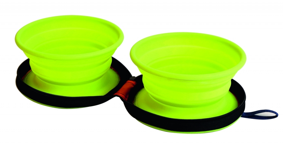 Silikonová sada misky se dvěmi psími mističkami.Rozměry 33,5 x 16,5x7,5 cm,hmotnost 350g