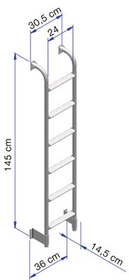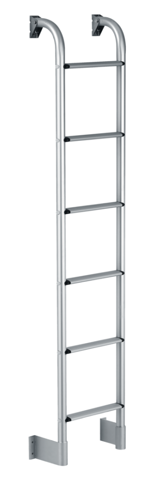 Žebříky THULE. Mají protiskluzový, žebrovaný nášlap (24 x 5 cm) a snadno se montují. Jsou vyrobeny z eloxovaného nebo práškově lakovaného hliníku s nerezovými spojovacími prvky.