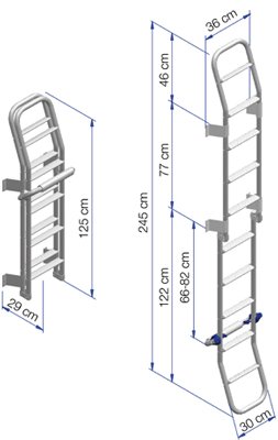 Vyrobeno z nerezového hliníku s ø trubky 30 mm. Žebříky mají protiskluzový žebrovaný schůdek a snadno se montují. Včetně montážního příslušenství.
