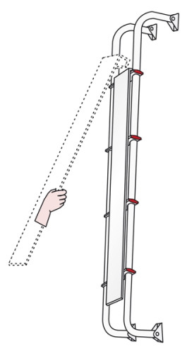 Robustní, bezpečné a uzamykatelné zařízení proti krádeži pro zadní žebřík.
