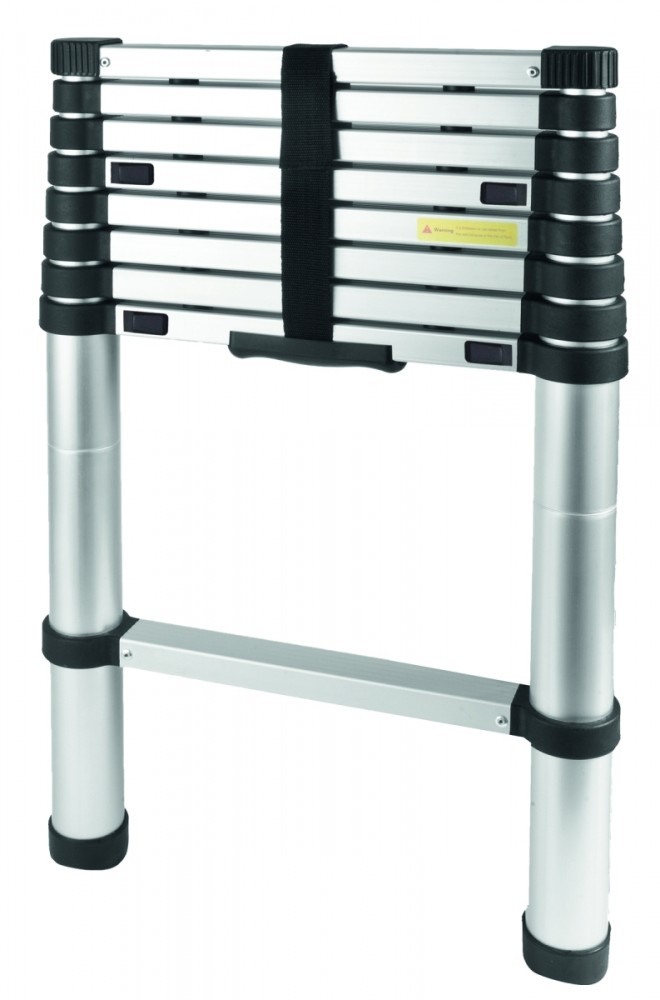 Teleskopický hliníkový žebřík s nově vyvinutou technologií Soft Close s podporou vzduchu, která eliminuje riziko poranění prstů.