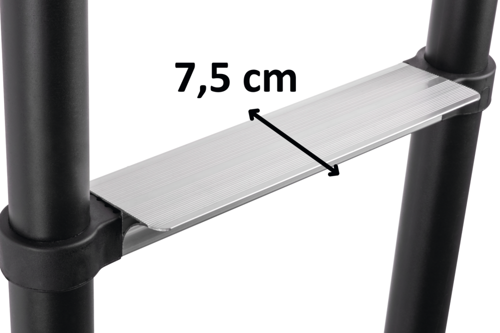 Tento hliníkový žebřík byl pečlivě vyroben a vyznačuje se unikátními, šikmými schody, které se plynule přizpůsobí konturám vašich chodidel, což umožňuje bezpečné a bezbolestné lezení, a to i naboso. Umožňuje snadný přístup ke střešním stanům nebo palandám a usnadňuje důležitou údržbu a opravy vozidel. Maximální nosnost: 150 kg.