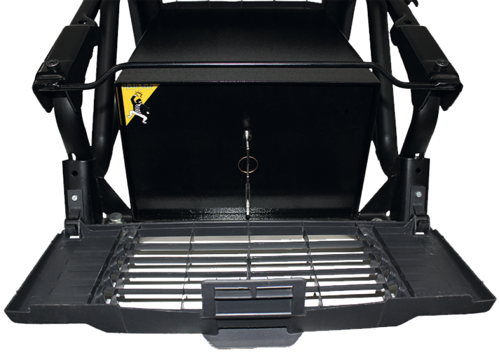 Pro vozidla s příčně umístěnou baterií vzadu, pod konzolou sedadla. Trezor se také montuje pomocí montážních šroubů instalovaných z výroby na konzoli sedadla.