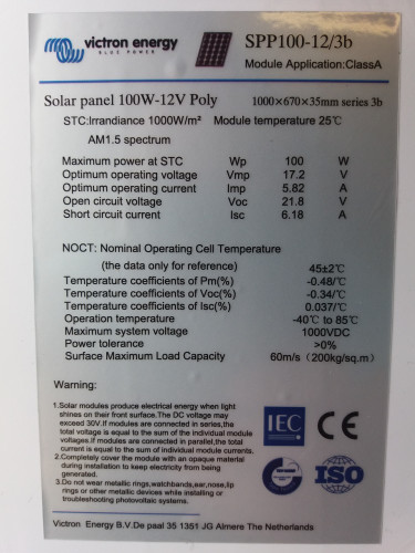 Připojení: solární panel je vybaven dvěma kabely zapojenými do svorkovnice na zadní straně. Kabely jsou cca 90cm dlouhé a jsou zakončené konektory MC4.