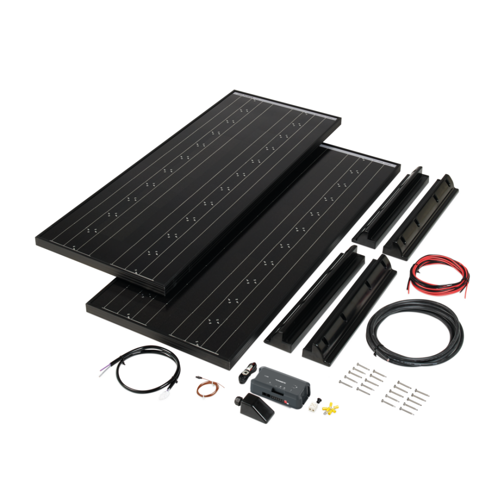 Obsahuje 2 solární panely 210 W.