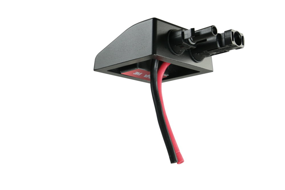 Robustní, plochý a vodotěsný PUR kabelový vstup. Lze přilepit těsnicím lepidlem (Sikaflex, Dekalin). Připraveno k zapojení pro solární moduly s konektory MC4. Součástí balení je 0,5m vnitřní připojovací kabel.