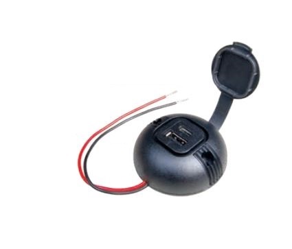 12-24 V DC/5 V DC s integrovaným měničem napětí a modrou LED. Pro nabíjení a provoz elektronických zařízení, která se nabíjejí přes USB. Upevnění pomocí přiložených šroubů. Kabelová přípojka cca 15 cm, předmontovaná. Vstup 8-34 voltů, schválení E1, vnitřní spotřeba < 3 mA. 1 x USB-C + 1 x USB-A S ochranou proti přetížení, přehřátí, přepólování, zkratu, přepěťové ochraně pro krátké napěťové špičky. Délka kabelu 15 cm, průřez kabelu 0,5 mm², výstupní proud max. 3 A (Port C) / 2,5 A (Port A) (25 wattů). S víkem. Rozměry V 23,8 x ø 59 mm.
